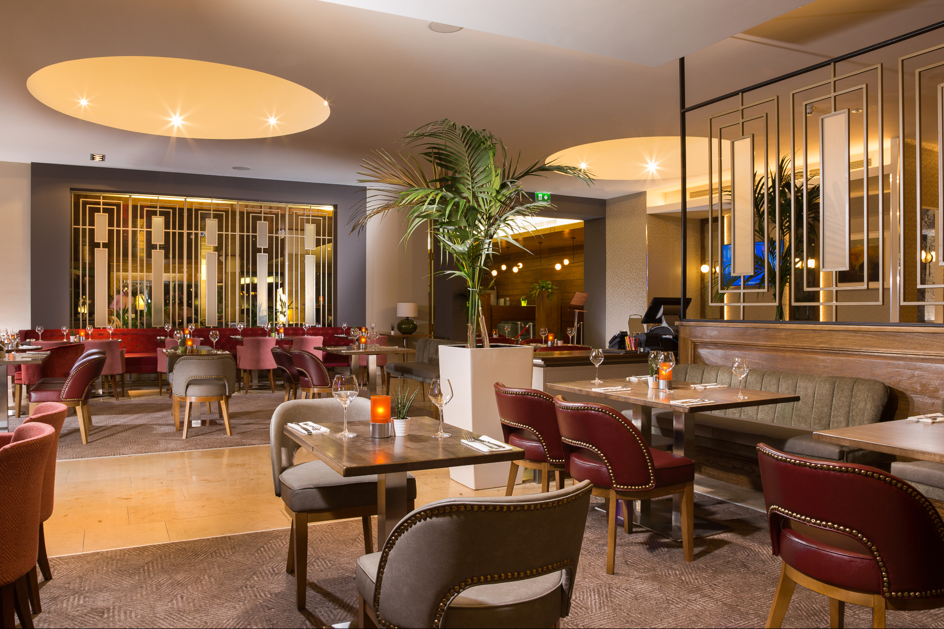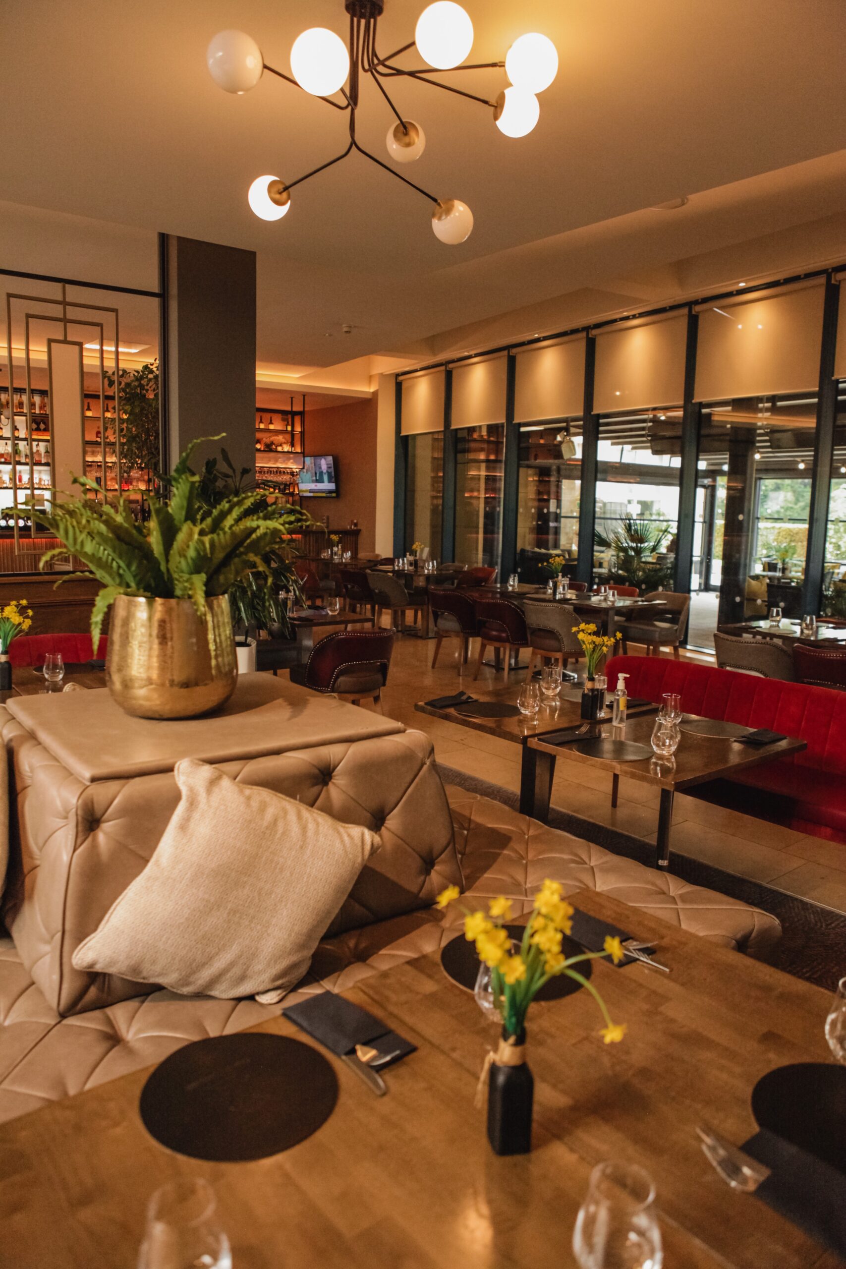 The Lime Tree Bar is a beautifully styled cocktail bar that provides a stylish yet warm cosy experience with luxurious tan leather booths that can accommodate small groups together.