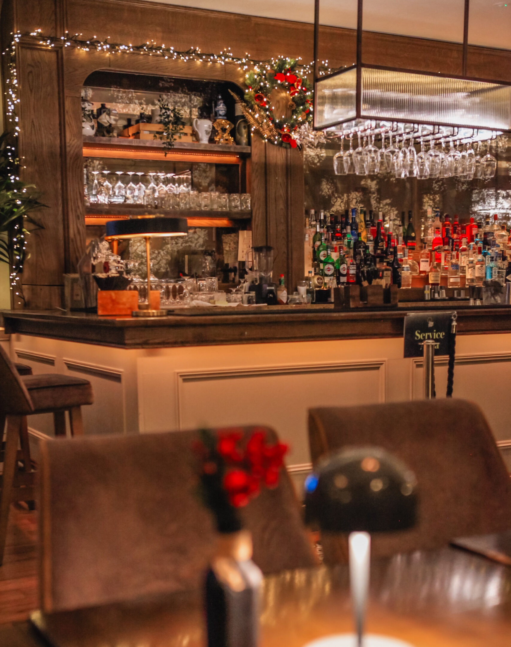 The Lime Tree Bar is a beautifully styled cocktail bar that provides a stylish yet warm cosy experience with luxurious tan leather booths that can accommodate small groups together.