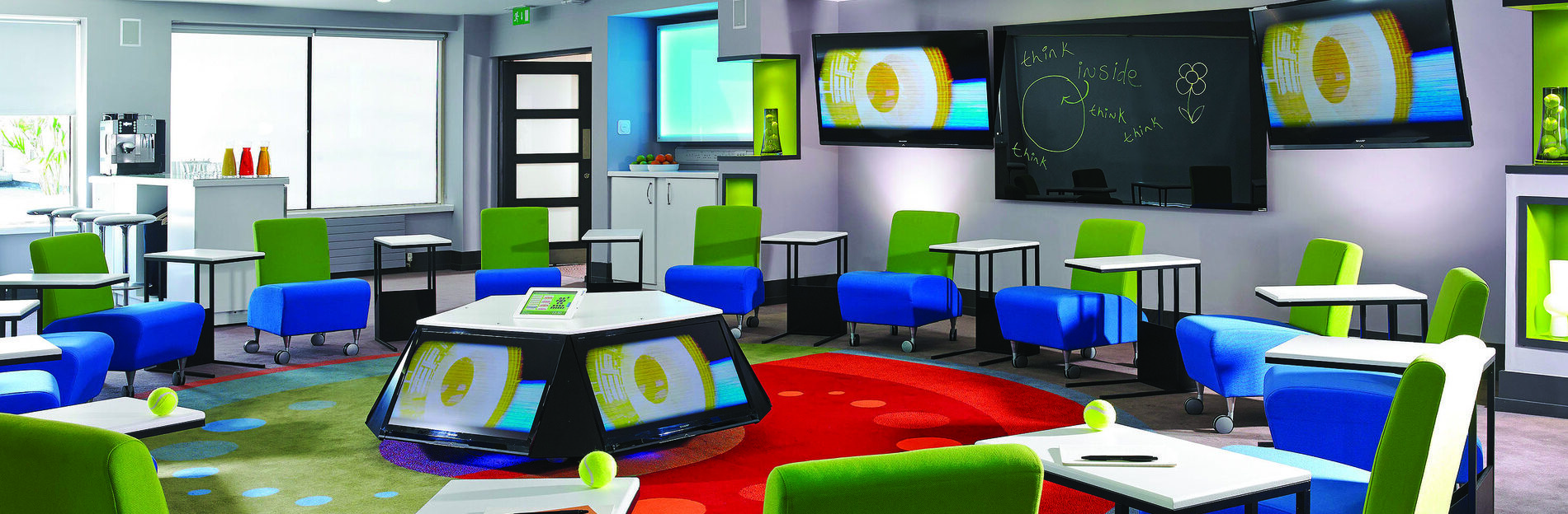 Perfect for brainstorming sessions, strategic meetings and product launches. There are several small breakout areas within the room. We have ClickShare available for use in the Thinking Factory.